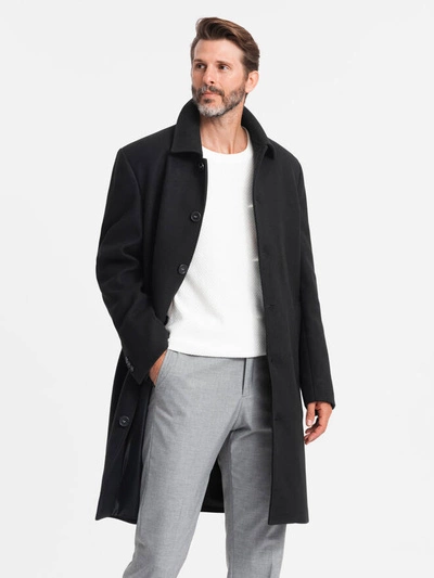 Palton bărbătesc lung cu o singură pieptănătură, cu guler și strat inferior - negru V1 OM-COWC-0135