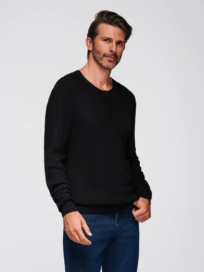 Pulover bărbătesc costeliv cu nasturi la decolteu - negru V2 OM-SWSW-0182