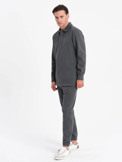 Hanorac cu guler polo cu tricot structurat pentru bărbați - grafit melange V1 OM-SSNZ-0149