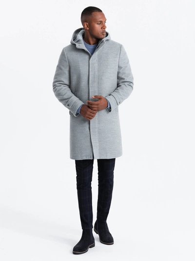 Palton monocrom lung cu glugă pentru bărbați - gri melange V1 OM-COWC-22FW-005