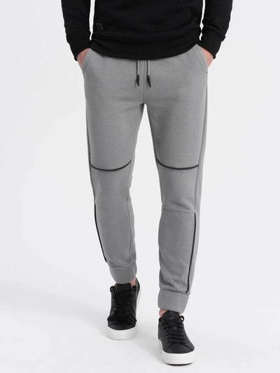 Pantaloni de trening pentru bărbați cu cusături contrastante - gri melange V3 OM-PASK-0145