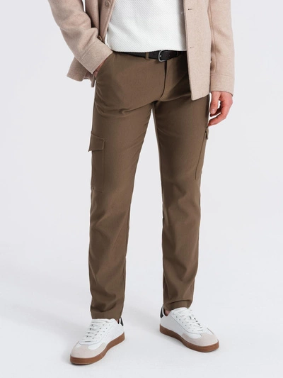 Pantaloni bărbătești REGULAR din stofă cu buzunare cargo - verde oliv V2 OM-PACG-0178