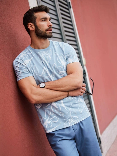 Tricou bărbătesc cu imprimeu integral și frunze contrastante - albastru V2 OM-TSFP-0180