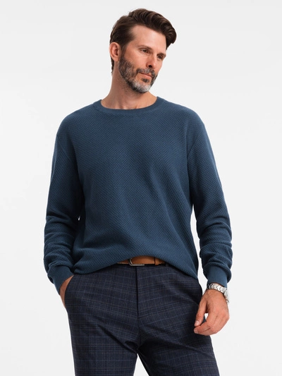 Pulover bărbătesc RELAXED FIT din tricot cu diamante - albastru marin V2 OM-SWSW-0110