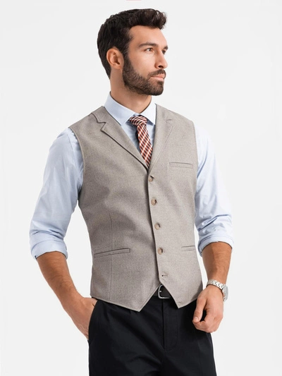 Kamizelka męska garniturowa z kołnierzem - beżowa V3 OM-BLZV-0109