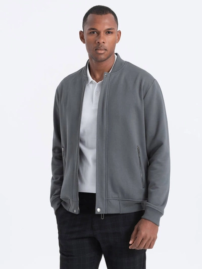 Pánska bunda bomber na zips - sivá V3 OM-SSZP-22FW-011