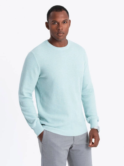 Pánsky melanžový štruktúrovaný pletený sveter - mätový V1 OM-SWSW-0142