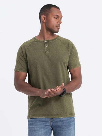 Pánske tričko s výstrihom henley - tmavo olivová V4 S1757