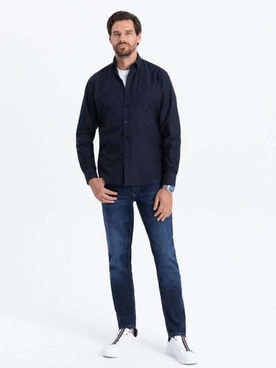 Pánska bavlnená oxfordská košeľa s vreckom REGULAR - tmavomodrá V5 OM-SHOS-0108