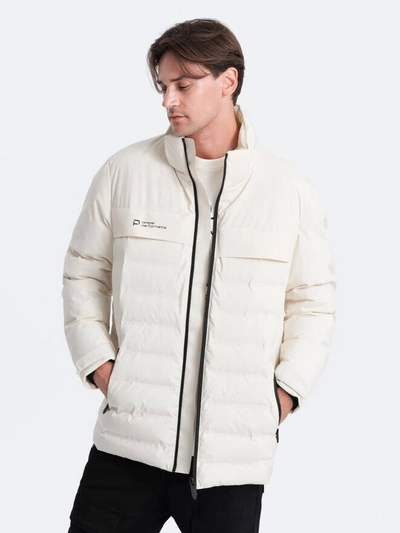 Men's winter jacket with detachable hood - cream V2 OM-JAHP-0150
