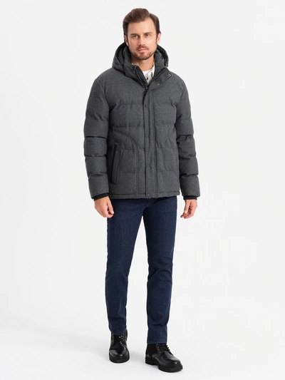 Ilga šilta vyriška striukė su vilna - tamsiai pilkas melanžas V4 OM-JALJ-0217
