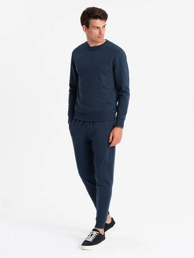 BASIC medvilninių vyriškų marškinėlių rinkinys BASIC marškinėliai ir sportiniai marškinėliai - tamsiai mėlyni V1 Z84