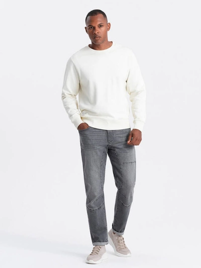 Pánske džínsové nohavice TAPER FIT s prešívaním a ohrnutými nohavicami - sivé V2 OM-PADP-0161
