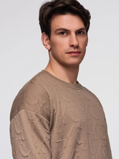 Pánska mikina RELAXED FIT s reliéfnym nápisom - hnedá V3 B1712